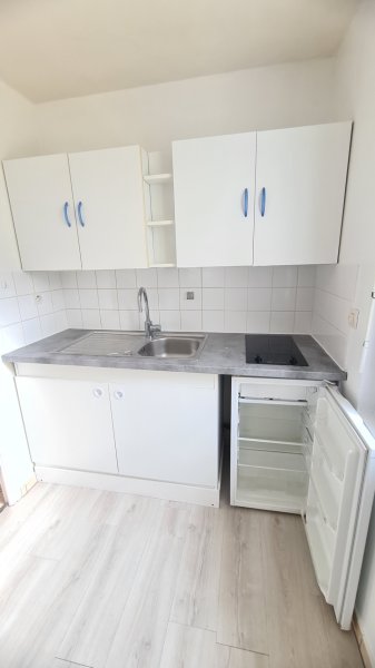15' RER, petit immeuble rural, studio : coin-cuisine équipé (plaque, frigo), séjour, salle d'eau avec wc. 498 EUR C.C DG : 490 EUR, F.A : 283,14 EUR.