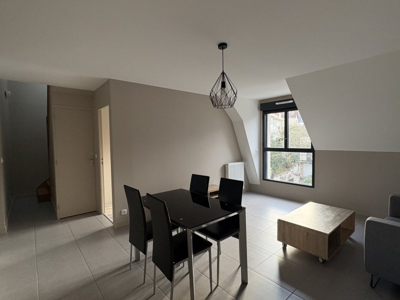 10' RER Lozère , petit immeuble récent, appartement 3 pièces MEUBLE, (surface au sol 67,55 m2), duplex, il comprend : cuisine équipée (plaques, hotte, four, frigo), séjour,2 chambres (dont 1 sous comble), salle d'eau avec wc. 2 parkings extérieurs 1057 EUR chauffage et eau compris DG : 1914 EUR ; F.A : 538,57 EUR