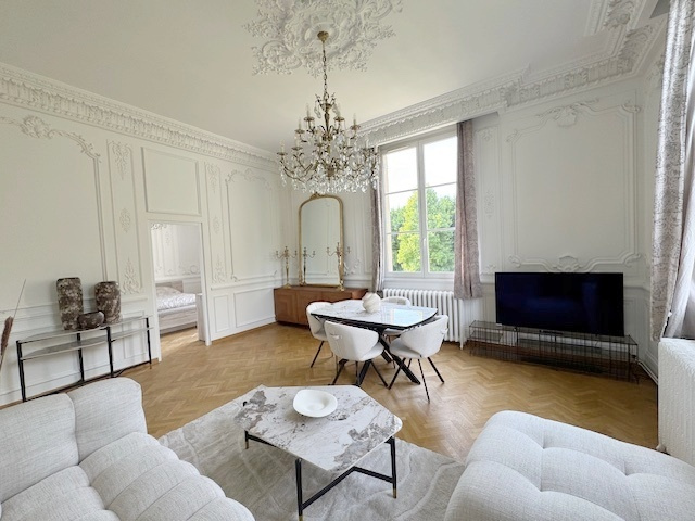 L'AGENCE DE VILLENNES vous propose un très bel appartement de grand standing louée entièrement meublé, situé dans un magnifique parc aux arbres centenaires. Au 1er étage avec ascenseur, il se compose d'une entrée ouvrant sur un lumineux salon/salle à manger de 44 m2 aux murs et plafonds ornés de moulures exceptionnelles, parquet au sol dans tout l'appartement, cuisine équipée neuve, une chambre avec placard et dressing, deux autres chambres dont une avec placard, salle de douche, toilettes séparées. Une cave et deux places de parking en sous-sol complètent ce bien. Belles prestations. Accès rapide A13/14, gare SNCF de VILLENNES (futur RER E), gare de POISSY (RER A).