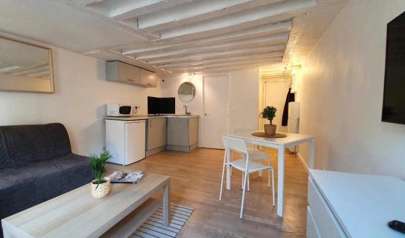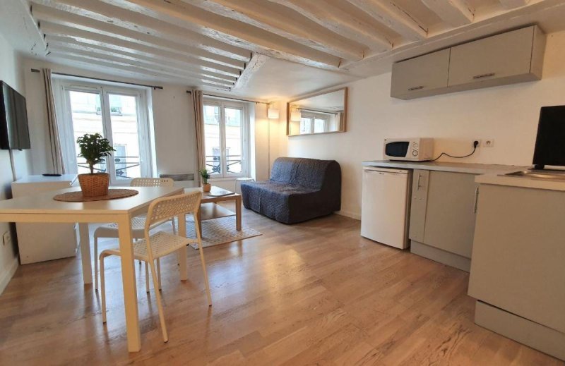 Dans le 2ème arrondissement, presque à l'angle Rue Réaumur et rue Saint Denis, proche du métro Réaumur Sébastopol et Sentier, dans un immeuble ancien, au 5ème étage sans ascenseur, un studio cosy de 22m2 meublé, comprenant: Entrée avec rangements et espace buanderie , grande pièce de vie avec cuisine ouverte. poutres au plafond, deux fenêtres dans le séjour. lumineux et agréable. Salle d'eau avec wc. Chauffage et eau chaude individuels électriques. Loyer charges incluses: 1000 euros (960+40). Dépôt de garantie 1920 euros. Honoraires d'agence: 331 euros ttc ( 265+66). DPE E.