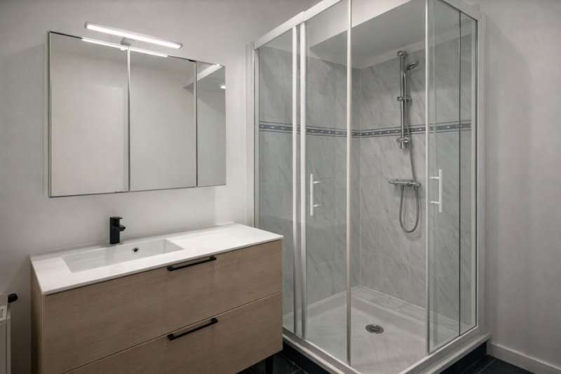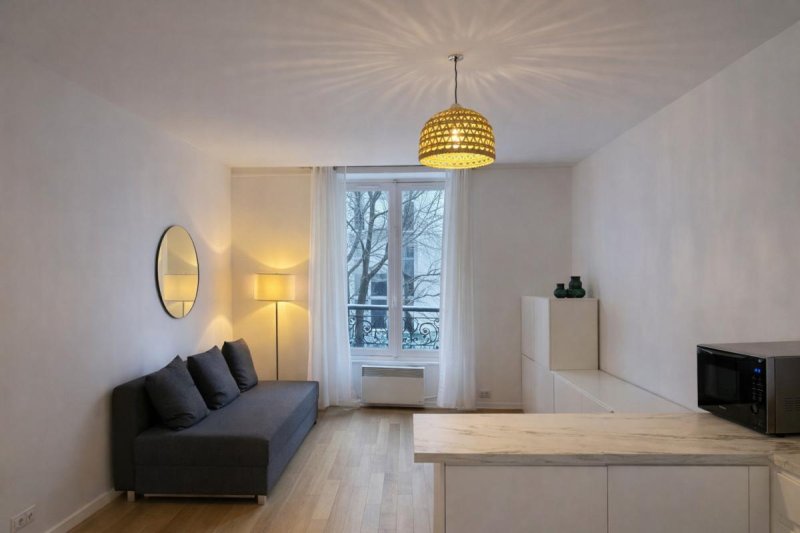 L'appartement se compose d'un agréable séjour lumineux avec cuisine ouverte aménagée et équipée, offrant un espace de vie convivial et parfaitement optimisé. La cuisine contemporaine dispose d'un plan de travail et de nombreux rangements.