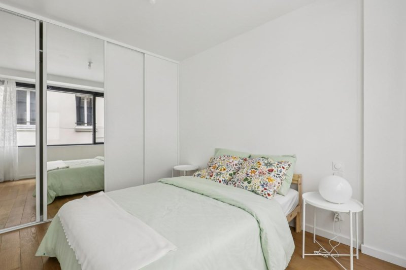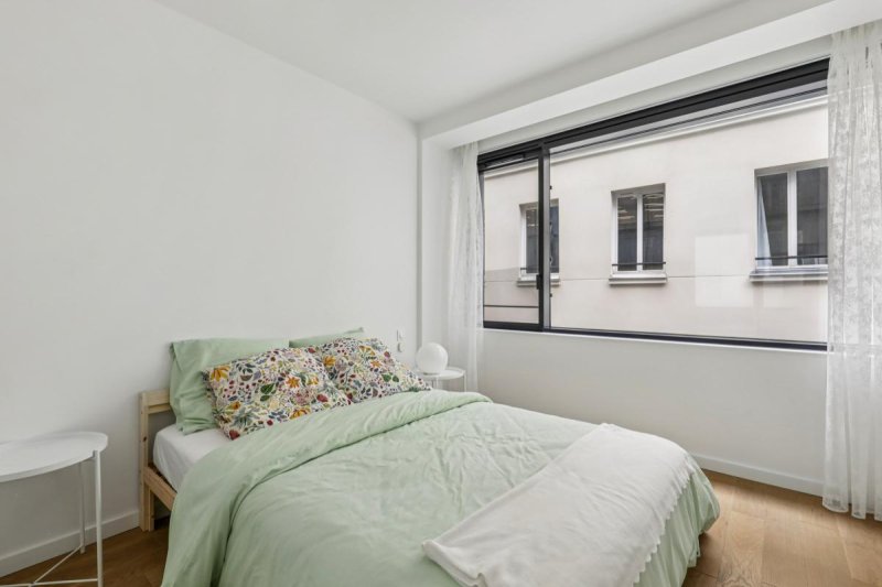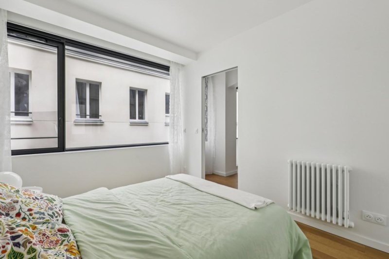 L'appartement sur cour, se compose d'une grande pièce principale, une cuisine intégrée et équipée, d'une salle de bains et de nombreux rangements.