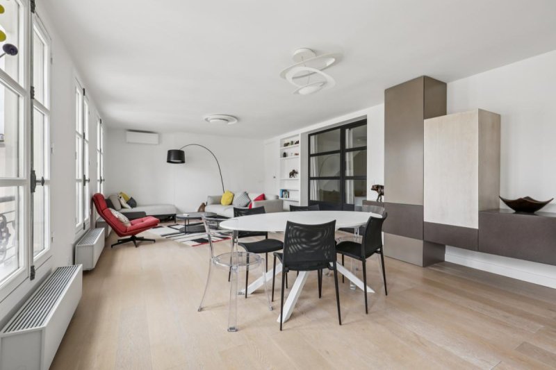 A proximité du métro Hôtel de Ville, Engel & Völkers vous propose la location d'un appartement meublé de 93m² avec une terrasse de 21m², 4 pièces au 5e étage avec ascenseur. L'appartement est disponible uniquement pour six mois.