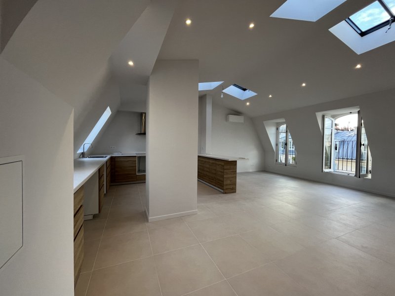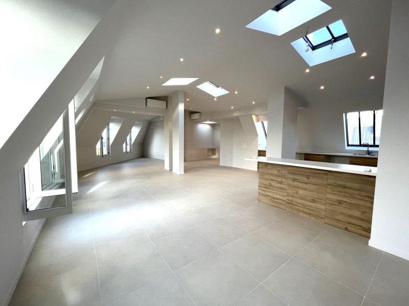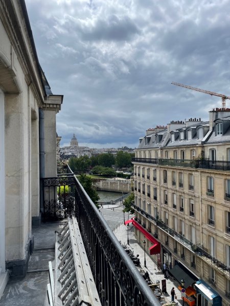 Ce duplex exceptionnel, situé au dernier étage, offre une vue imprenable sur la Seine et a bénéficié d'une rénovation totale de grande qualité. Il est situé au 5e et 6e étage d'un immeuble ancien avec ascenseur. Le 5e étage comprend une entrée desservant trois chambres, chacune avec accès à un balcon filant. Vous y trouverez également trois salles de douche, dont une avec espace buanderie, ainsi que deux WC séparés. Au 6e étage, une vaste réception s'étendant sur près de 76 mètres carrés avec un plafond cathédrale bénéficiant d'une belle hauteur et de nombreuses fenêtres qui inondent l'espace de lumière naturelle. De plus, une cuisine ouverte aménagée est présente. Toutes les pièces sont équipées de la climatisation, et l'isolation a été optimisée pour votre confort. Deux caves complètent cet ensemble.