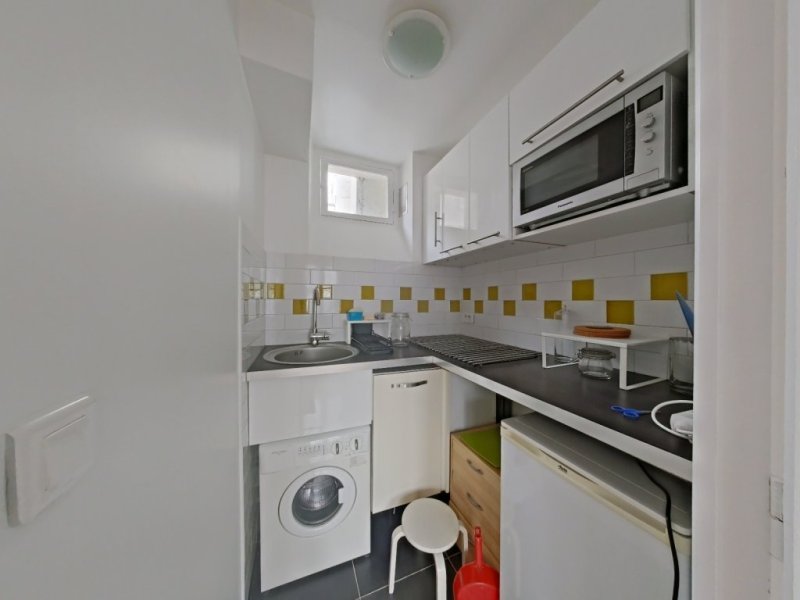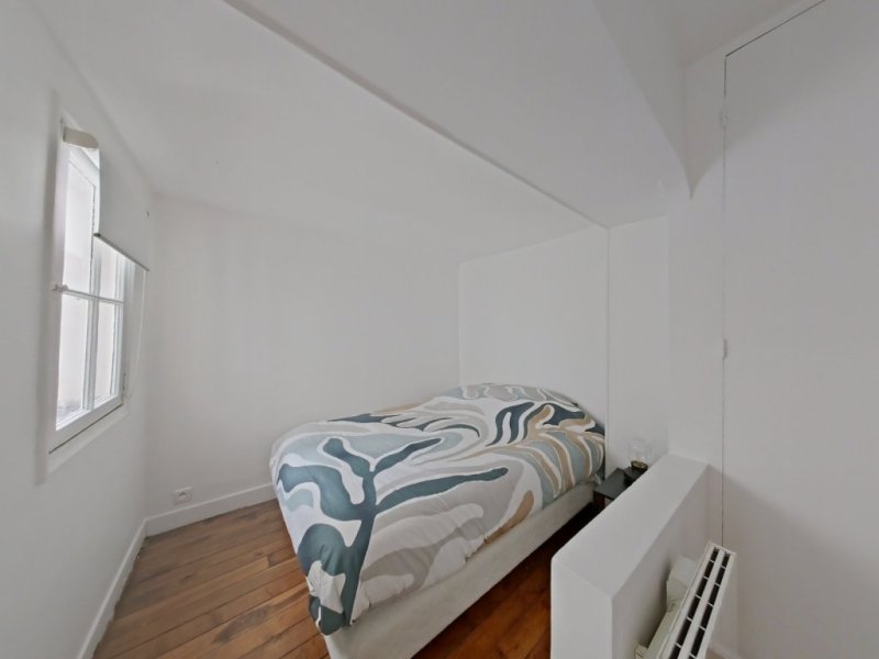 A Paris 6ème, au coeur du quartier Saint-Germain-des-Prés, rue des Ciseaux, un appartement Meublé et rénové de 33,76m² au 5ème étage SANS ascenseur d'un immeuble des années 1800. Appartement très calme car donnant sur cour. A moins de 100 mètres des transports : Saint Germain des Pres (ligne 4) et Mabillon (ligne 10).
