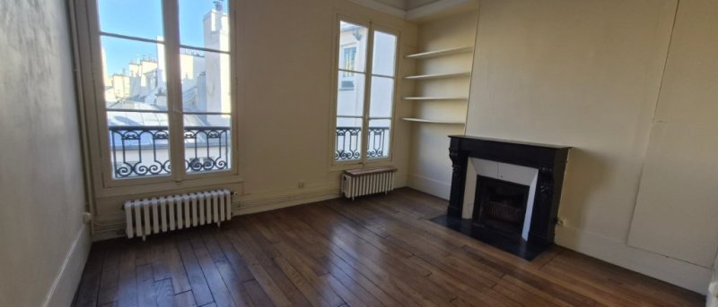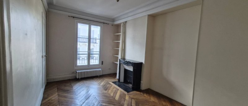 Appartement traversant ensoleillé de 3 pièces au 4ème et dernier étage sans ascenseur d'un immeuble en pierre de Paris rue Saint Dominique, quartier Gros Cailloux entre la Tour Eiffel et les Invalides : entrée desservant un séjour, deux chambres, une petite cuisine non équipée, une salle de bains avec wc sanibroyeur. Parquet, cheminée, digicode.