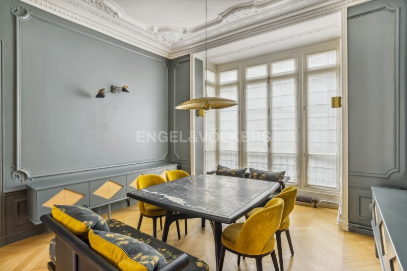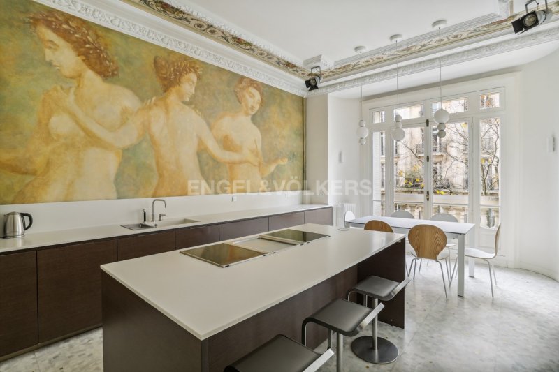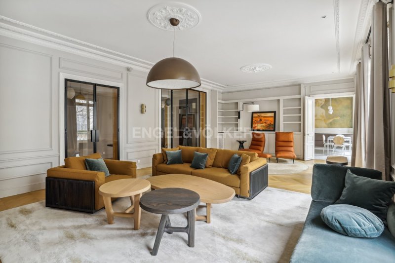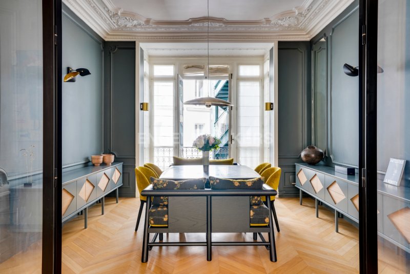 Dans un immeuble haussmannien de standing, au 2ème étage, cet exceptionnel appartement familial et de réception de 259m² Carrez se distingue par ses volumes généreux et son agencement raffiné.