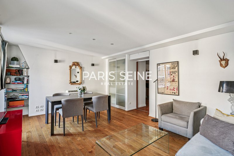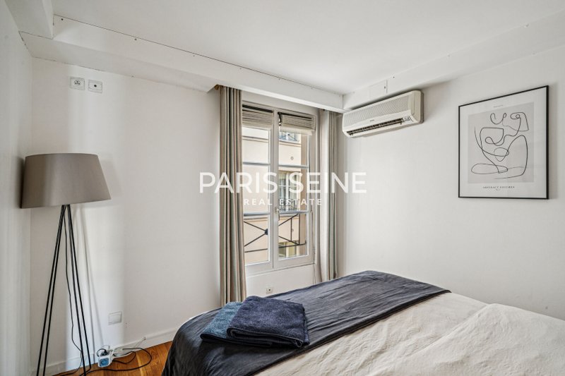 Ce bien se compose d'un spacieux séjour avec coin salle à manger, d'une cuisine entièrement équipée avec lave-vaisselle et cave à vin, d'une chambre sur cour au calme, ainsi qu'une salle de douches avec WC. L'appartement est climatisé et offre de nombreux rangements.
