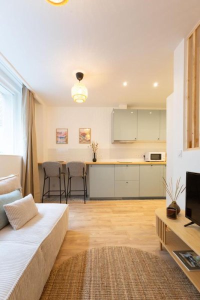 Entièrement optimisé et rénové avec goût, il se compose d'une agréable pièce de vie lumineuse avec cuisine ouverte aménagée et équipée, offrant un espace convivial et fonctionnel.