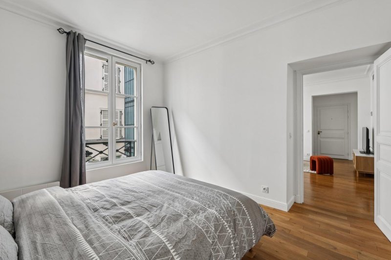 L'appartement sur cour, se compose d'une entrée, d'un séjour avec salle a manger, d'une chambre avec dressing et d'une salle de bain en-suite avec wc, d'une cuisine aménagée et équipée, et d'un wc invité.