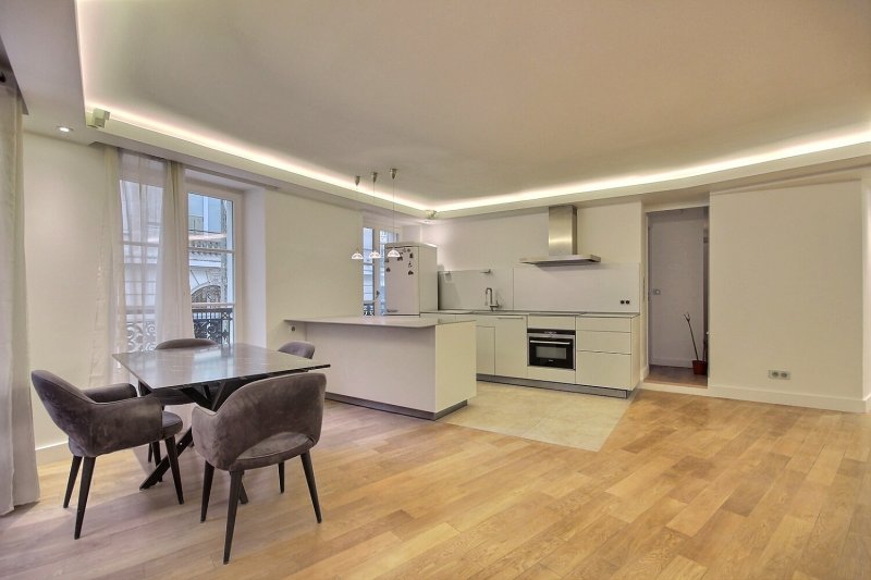 Au 1er étage, avec ASCENSEUR, d'un immeuble de 1850, appartement meublé, en PARFAIT ETAT, de 83,20 m² comprenant une entrée, un séjour de 42,73 m² donnant sur une cuisine ouverte aménagée et équipée , 2 chambres de 16,13 et 10,50 m², 1 salle de douche, 1 buanderie, 2 wc.