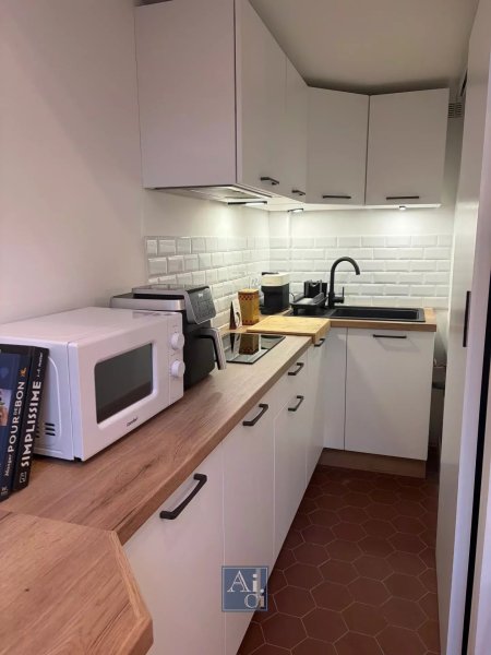 Dans une petite copropriété de charme, AICI vous propose un joli duplex meublé de 24,23 m² entièrement refait à neuf et jamais habité en rez-de-jardin comprenant un séjour avec cuisine toute équipée, une salle de bains, un toilette séparé, accès par un escalier à une mezzanine/chambre.