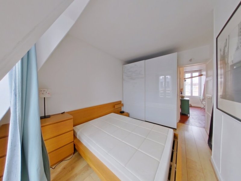 PARIS 11EME, à 50 mètres de la Place de la Nation, Boulevard Voltaire à proximité du métro 'Rue des Boulets' (ligne 9) et 'Nation' (ligne 1, 2, 6, 9 et du RER A), et de toutes commodités. Un appartement deux pièces MEUBLÉ de 32,87m² au 6ème et dernier étage sans ascenseur. Calme, lumineux et traversant, exposé SUD - OUEST.