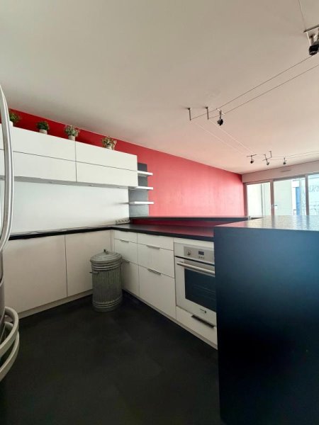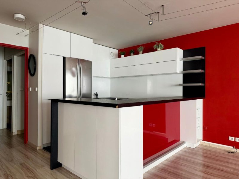 Il comprend un séjour avec balcon de 11,55m2, une cuisine ouverte aménagée et équipée (évier, plaques de cuisson, réfrigérateur/congélateur, mini lave-vaisselle, four), un espace chambre avec de nombreux placards, un dressing, une salle de bains et un WC séparé.