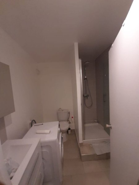 L'entrée avec placard dessert une pièce de vie confortable avec cuisine ouverte, ainsi qu'une salle d'eau avec WC. Résidence de standing avec piscine et saunarium au dernier étage !