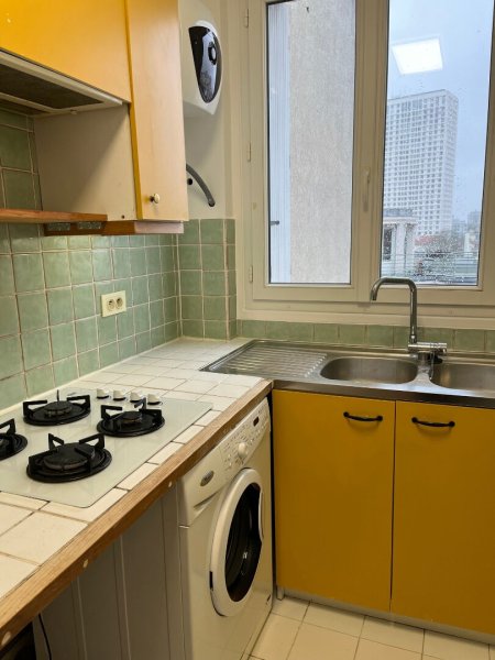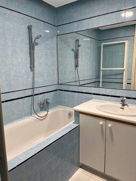 Au 9eme étage avec ascenseur, appartement lumineux de 2 pièces se composant d'une entrée avec de nombreux rangement, une cuisine aménagée et semi équipée, un grand séjour avec bibliothèque vitrine, une chambre avec placards, une salle de bain et des WC séparés.
