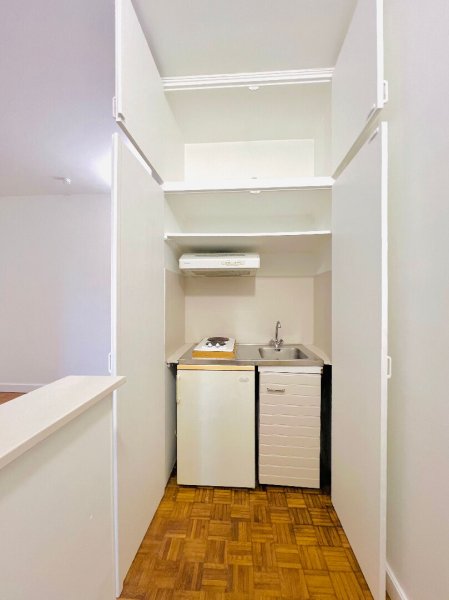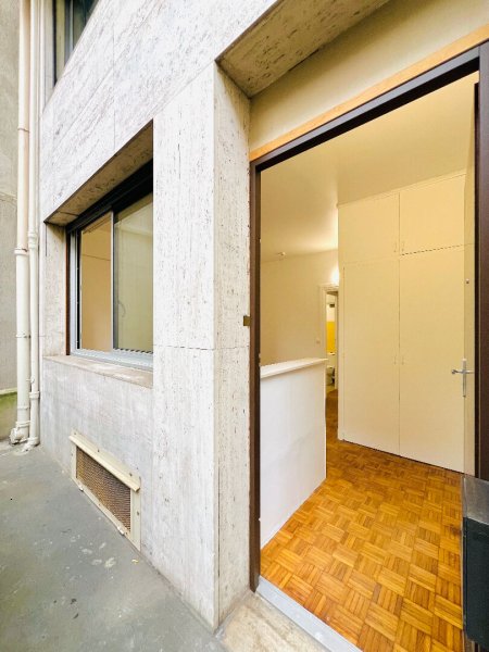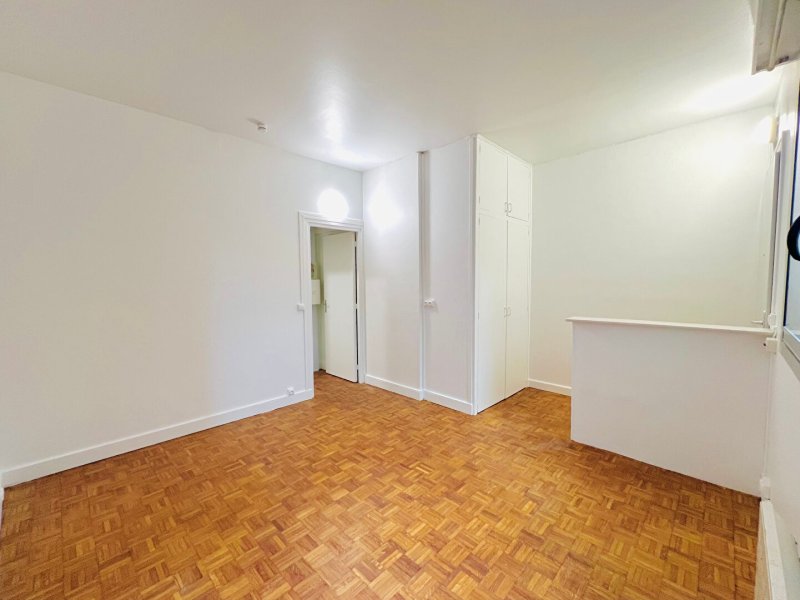 Studio de 21 m² (non meublé) situé au rez-de-chaussée (en retrait depuis la rue) avec cave au sous-sol.