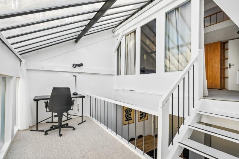 Deux mezzanines complètent ce bien : la première, idéale pour un espace de travail ou un bureau, et la seconde pouvant servir de chambre d'appoint ou d'espace de rangement supplémentaire. De nombreux rangements viennent également optimiser l'espace.