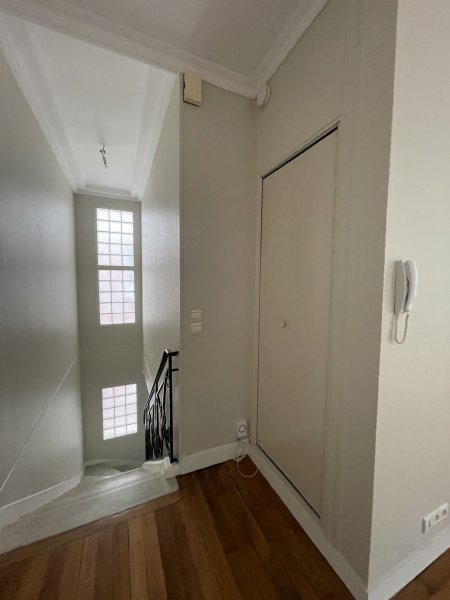 Au calme sur cour, Dernier étage. Très bel appartement de 2 pièces, d'une superficie de 65 m2, situé au 2e et dernier étage dans un immeuble ancien. Il se compose d'une entrée, d'un séjour, d'une chambre avec placards, d'une cuisine séparée et aménagée, d'une salle de douche ainsi que d'un wc séparé. Parquet, fenêtres en double vitrage, immeuble sécurisé, gardienne, jardin privatif à l'immeuble, espace vélos