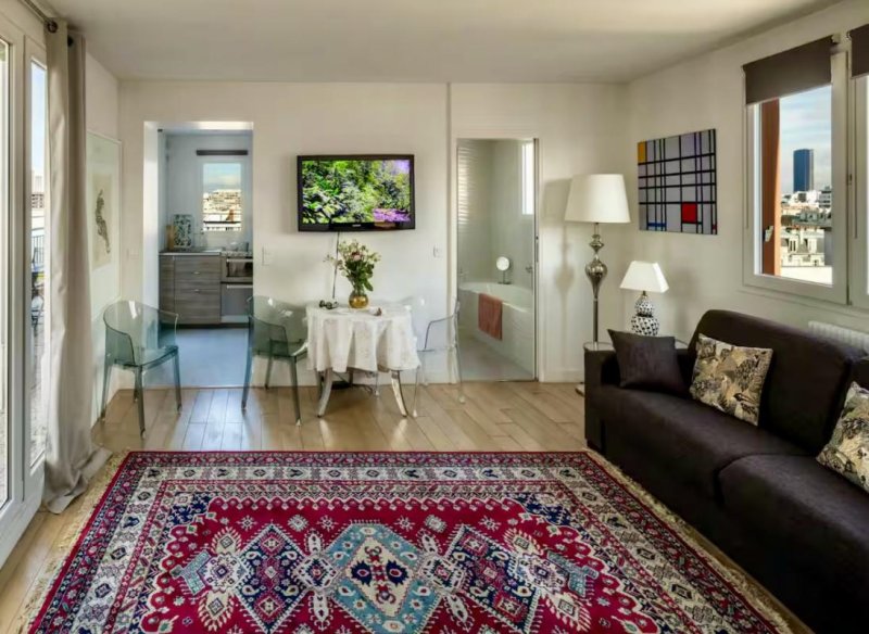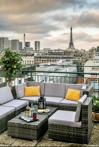 Offrant une vue panoramique dégagée, elle dévoile un panorama unique sur les toits de Paris avec la Tour Eiffel en toile de fond, idéale pour des moments de détente ou des soirées entre amis.