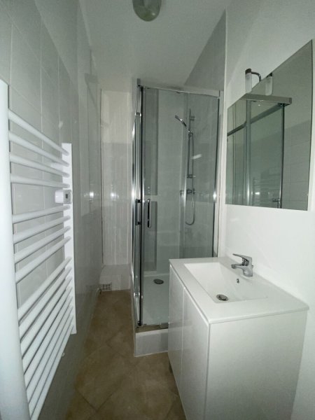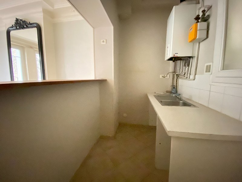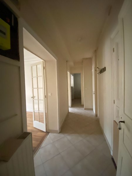 Un appartement T3 au 1er étage comprenant une entrée, un séjour avec cuisine semi-ouverte, 2 chambres, une salle d'eau et des WC séparés.