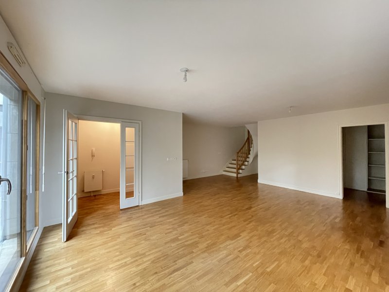 Dans une petite résidence moderne (2010) en retrait de la rue, 5 pièces en duplex en rdc avec petit jardinet. Il est composé au rdc, d'une entrée avec placards, d'un grand séjour, cuisine aménagée, wc et sddouche, un escalier menant au 1er étage; palier pouvant convenir de bureau, 3 chambres, wc, sdbains, dressing, ainsi qu'un balcon. Peintures neuves, chauffage collectif et eau chaude inclus dans les charges, CAVE, PARKING. Belles prestations, très calme.