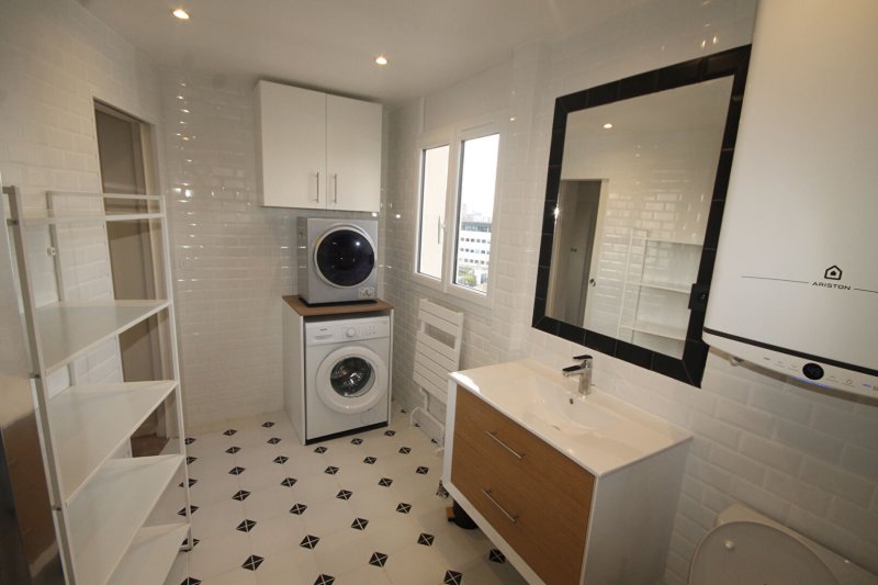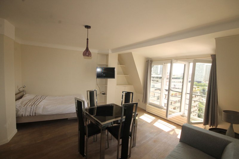 L'Agence GIF vous propose à la location sur Paris 16ème, av de Lamballe, à 2 pas de Passy et de ses commerces, face à la Seine et à Beaugrenelle, dans un bel immeuble ancien de 1920, au 7ème étage avec ascenseur, un appartement meublé refait à neuf comprenant un séjour, un coin chambre, une cuisine ouverte aménagée et équipée, une salle d'eau avec wc et buanderie,, et de nombreux placards.