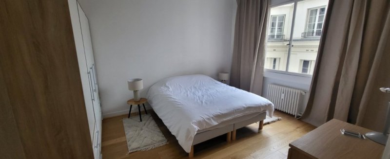 Grand 2 pièces meublé refait à neuf situé au 4ème étage avec ascenseur au calme près de la Porte Dauphine : entrée, cuisine indépendante aménagée et équipée, grand séjour avec coin repas exposé est, belle chambre avec placards, dégagement, salle de douche avec wc et lave-linge. Gardien, digicode, interphone, ascenseurs. Eau chaude et chauffage collectifs.