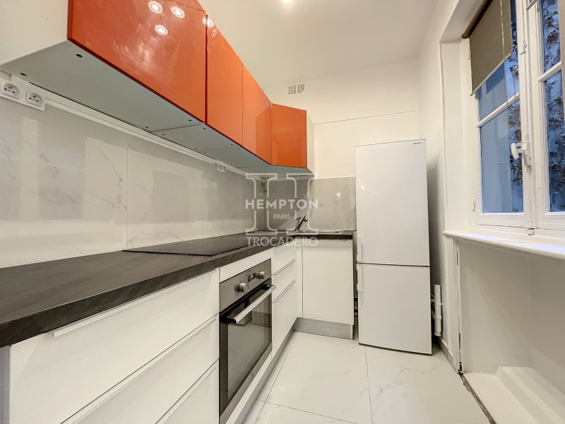 PARIS XVI o SECTEUR VICTOR HUGO | RUE DE LA POMPE | 2 pièces - 36,91m2 L'Agence Hempton Paris Trocadéro vous propose au premier étage sur cour d'un immeuble ancien, un deux pièces meublé et entièrement rénové avec configuration en étoile comprenant une entrée, un séjour, une chambre, une cuisine indépendante, et une salle de bains avec WC. Une cave complète ce bien. Honnoraires locataire: Bail code civil 12 % du loyer annuel charges comprises