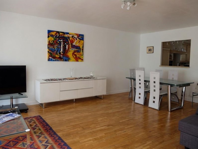 Situé dans une rue calme à deux pas du Trocadéro, cet appartement de 104 m² occupe seul son palier au 3ème étage d'un immeuble de standing de 1995.
