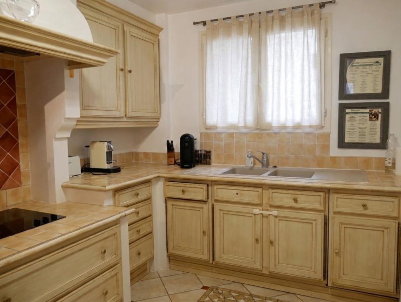 Cuisine : Espace semi-ouvert entièrement aménagé et équipé avec passe-plat.