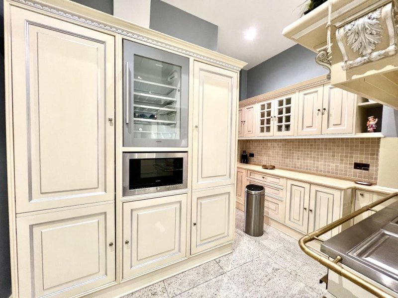 La cuisine séparée, entièrement équipée avec des appareils haut de gamme, allie fonctionnalité et esthétisme pour répondre aux attentes des plus exigeants.
