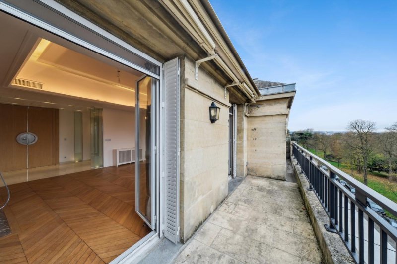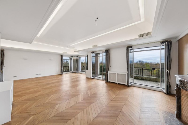 Cet appartement se compose d'une grande entrée desservant d'un triple séjour avec une terrasse et vues sur le Bois de Boulogne, d'une salle à manger, d'une grande cuisine aménagée et séparée, d'une chambre parentale avec un grand dressing et d'une salle de douche avec toilettes, de deux autres chambres chacune avec sa salle de d'eau et toilettes, et des toilettes invitées.