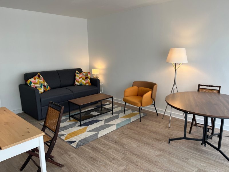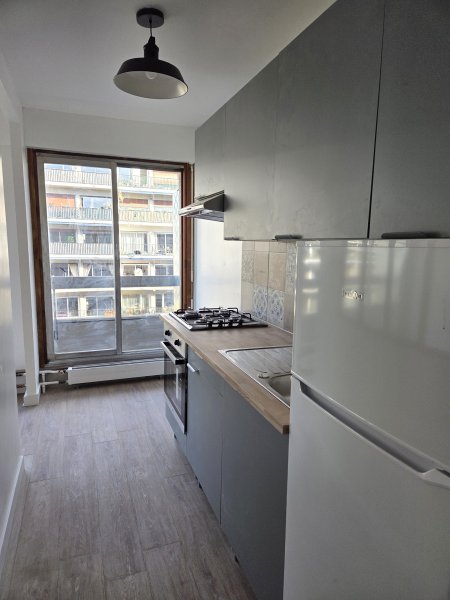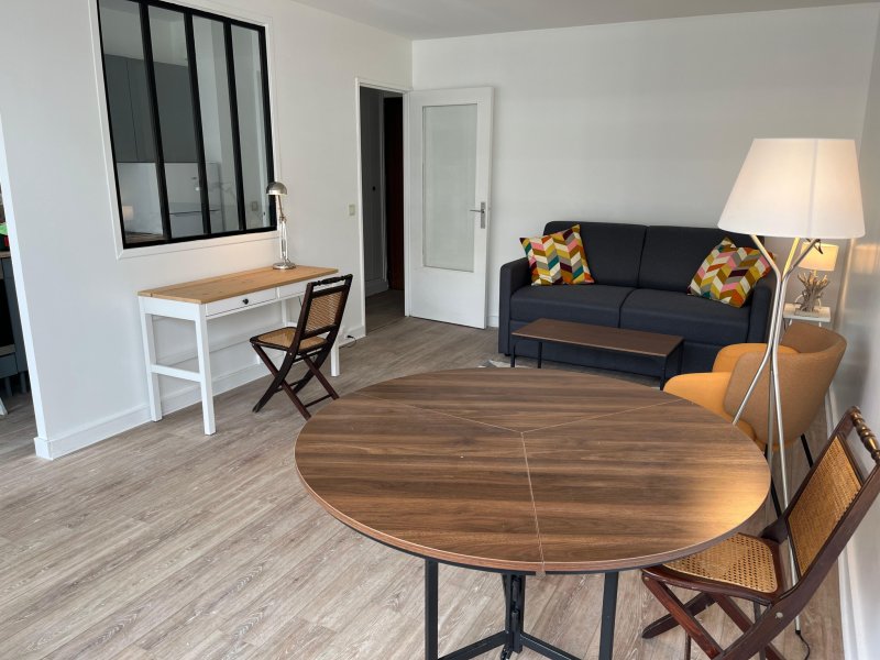 Rue de Saussure / Porte d'Asnières Dans immeuble récent, au 7ème étage avec ascenseur, beau studio meublé de 31,50 m2 comprenant: entrée avec grand placard, belle pièce principale avec baies vitrées sur grand balcon, cuisine aménagée et équipée et salle d'eau avec WC. Entièrement rénové. Chauffage et eau chude collectif. Possibilité de parking pour 130 EUR en plus. Disponible de suite.