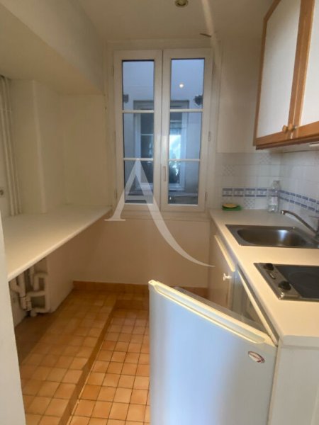 A louer agréable studio de 33 m² au calme en arrière court au 4 -ème étage sans ascenseur, comprenant une entée, un séjour avec rangement une cuisine meublée et partiellement équipée.