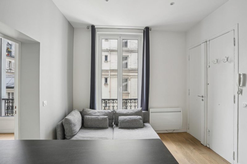L'appartement sur cour, se compose d'un séjour, d'une cuisine ouverte équipée et aménagée, d'une chambre et de sa salle de douche avec toilettes et du rangement.