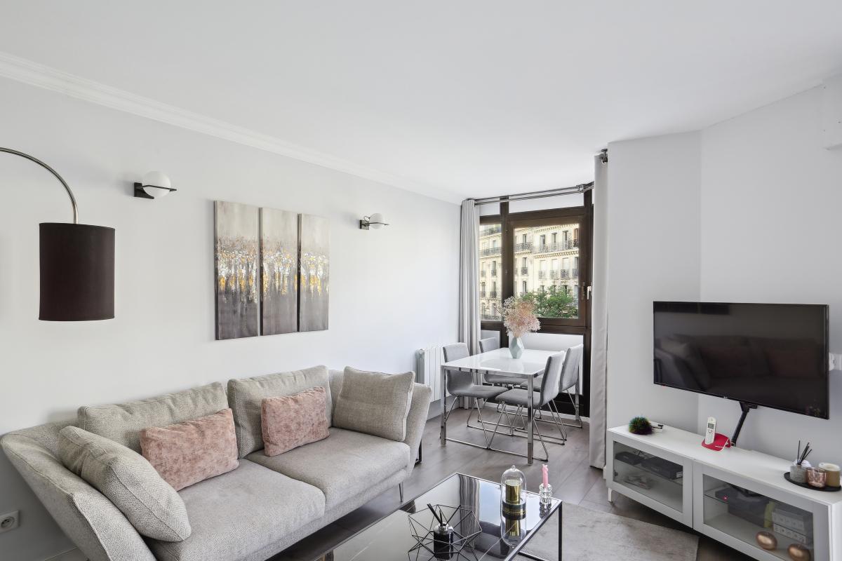 En plein coeur du 17ème arrondissement, dans le quartier des Ternes, cet appartement de 89.75 m² traversant, très lumineux, calme et spacieux offre de beaux espaces intérieurs, se trouve au 5ème étage avec ascenseur d'un bel immeuble sécurisé avec gardien datant des années 70.
