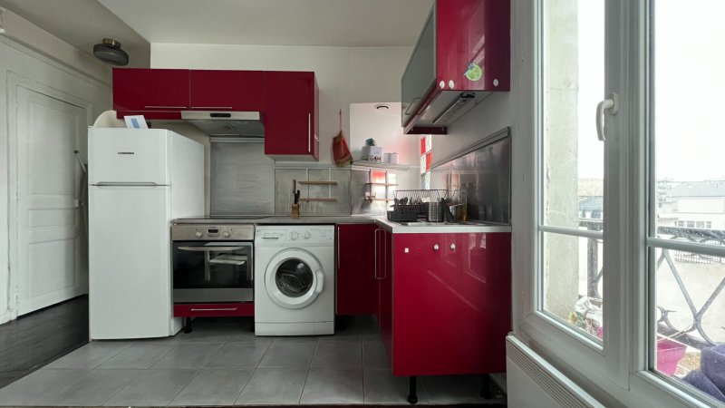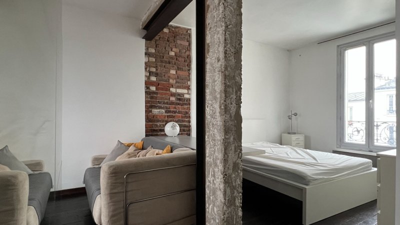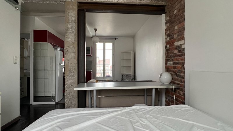PARIS XIXème - charmant studio avec espace chambre, situé rue de l'orme, au cinquième et dernier étage, sans ascenseur, d'un immeuble ancien. Proches de toutes commodités, entre le métro Télégraphe et l'Hôpital Robert Degré, disponible dans le cadre d'une location meublée.