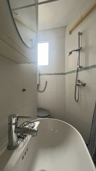 Entrée avec placard, salle d'eau avec WC, grand séjour double avec espace chambre et living avec cuisine ouverte, aménagée et équipée.