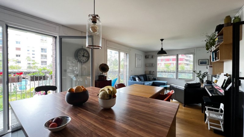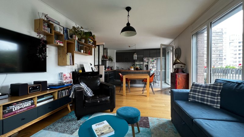PARIS XIXème - Coup de coeur - Bel appartement, calme et très lumineux, situé quai de la Marne au premier étage d'une résidence récente, de standing, aux bords du canal de l'ourcq, à quelques pas des commerces et du parc de la Villette. Local vélo et jardin partagé accessibles aux résidents.