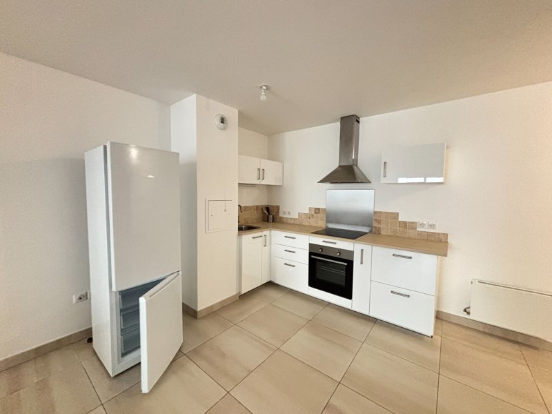 La cuisine ouverte, moderne et entièrement aménagée, dispose de nombreux rangements et d'équipements de qualité, parfaite pour une installation immédiate.