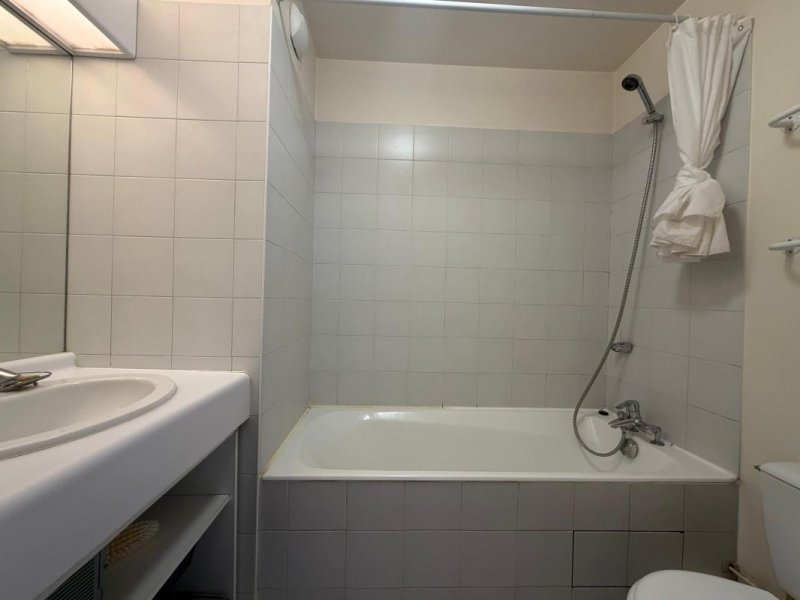 Il comprend une entrée avec placard, un séjour avec coin-cuisine ouverte aménagée et équipée (évier, plaques de cuisson, réfrigérateur/congélateur, micro-ondes et machine à laver), une belle terrasse ensoleillée de 9,70m² et une salle de bains avec WC.