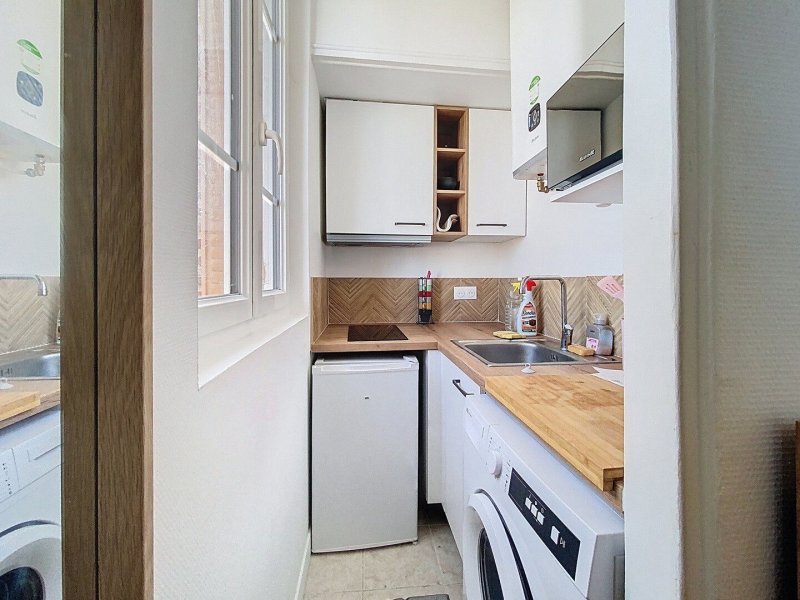 Studio meublé entièrement rénové comprenant entrée, pièce principale, cuisine aménagée et équipée, salle d'eau avec wc. Cave en sous-sol.