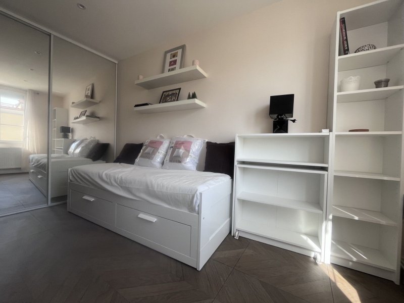 Situé au 6e étage avec ascenseur d'un immeuble sécurisé avec gardien, interphone et digicode, ce bien a été entièrement rénové par un architecte. Il se compose d'une pièce principale avec coin cuisine aménagée et entièrement équipée (four micro-ondes, plaques de cuisson, hotte, réfrigérateur, lave-linge), d'une banquette-lit, d'un bureau escamotable, d'un téléviseur, ainsi que d'une salle d'eau avec WC.