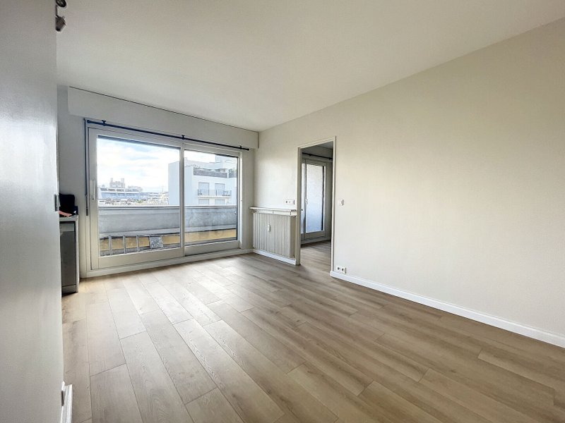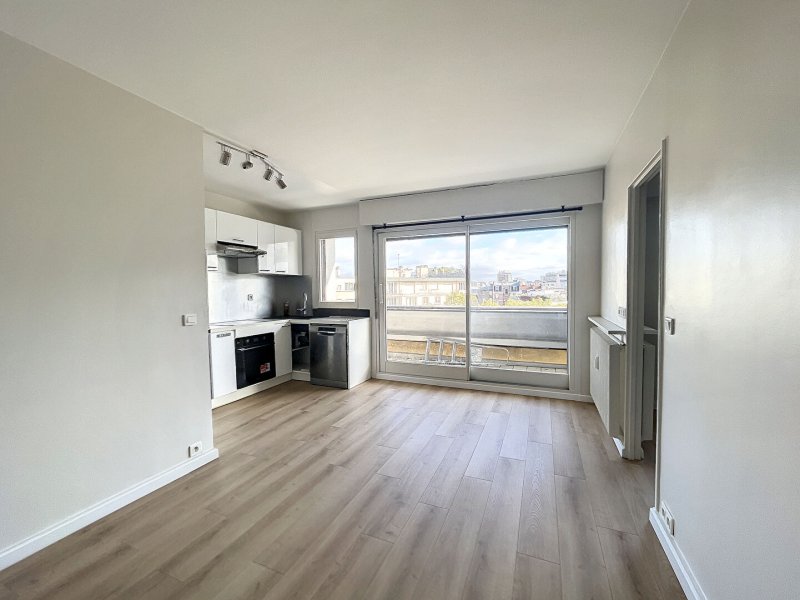 Dans bel immeuble avec gardien, au dernier étage, agréable 2 pièces comprenant entrée, séjour avec cuisine aménagée ouverte sur le séjour donnant sur balcon, chambre avec placard, salle d'eau, wc séparés.
