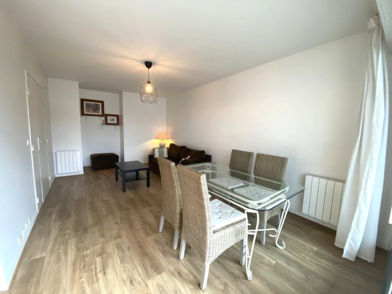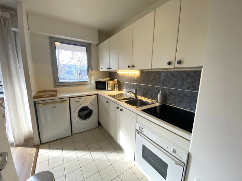 Dans un immeuble moderne de standing, au 3ème étage par ascenseur, ravissant appartement 2P meublé de 45m2 avec grande terrasse au calme sur verdure comprenant : Entrée avec rangement, séjour ouvrant sur une terrasse exposée Ouest avec une belle vue dégagée sur parc et sans vis à vis, cuisine us équipée, une chambre avec rangement, salle de bains et wc séparés. Un parking inclus au sous-sol de l'immeuble. Loyer: 1568 Euros cc. Honoraires de visite, constitution de dossier, rédaction de bail et état des lieux à la charge du locataire: 675Euros T.T.C. Classe énergie C, Classe climat B. Montant moyen estimé des dépenses annuelles d’énergie pour un usage standard, établi à partir des prix de l’énergie au 1er janvier 2023 : 780 à 1120 euros.