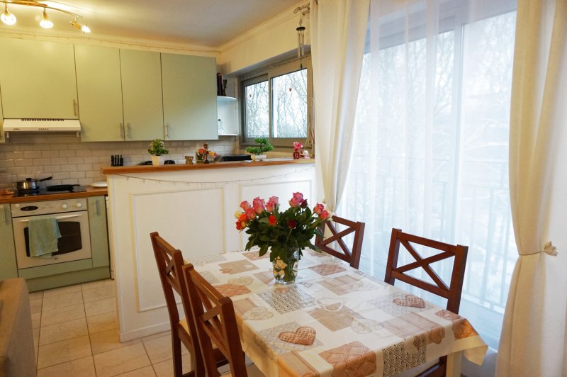 Situé à proximité de toutes commodités (gare, commerces, écoles, forêt), appartement de 3 pièces avec balcon au dernier étage, loué meublé. Entrée avec placards, cuisine ouverte entièrement équipée, séjour, dégagement avec placards, desservant 2 chambres avec placards, salle de bains, wc. Parking privé. Excellent état général.