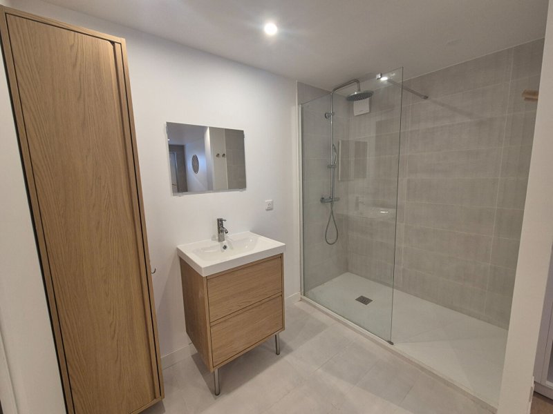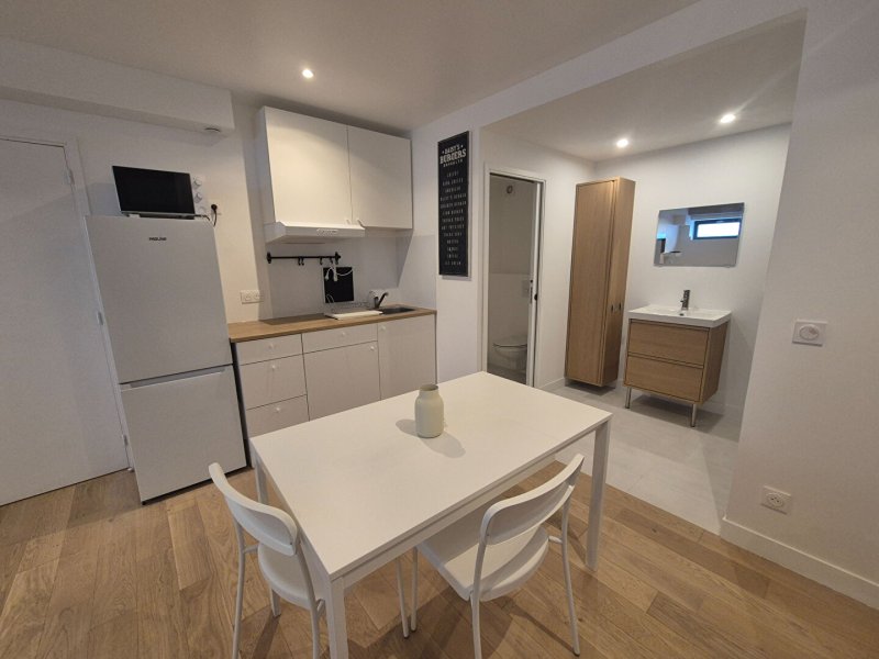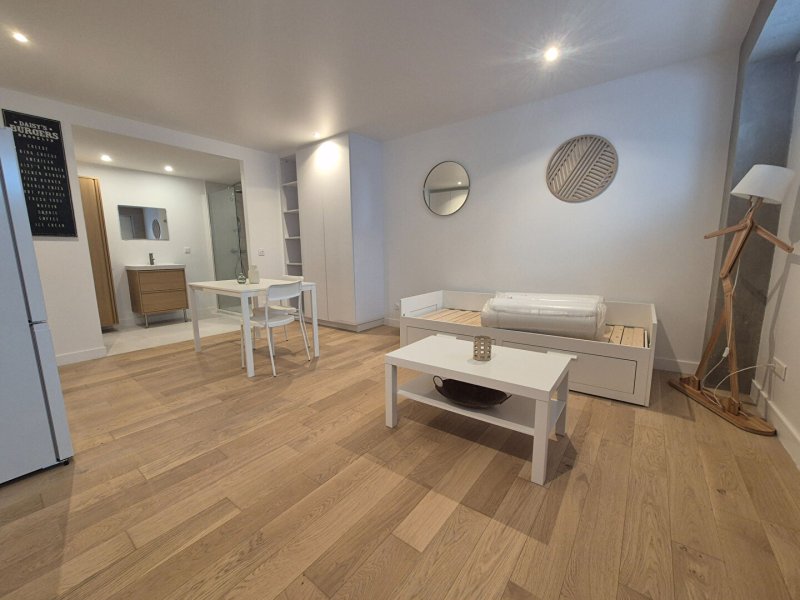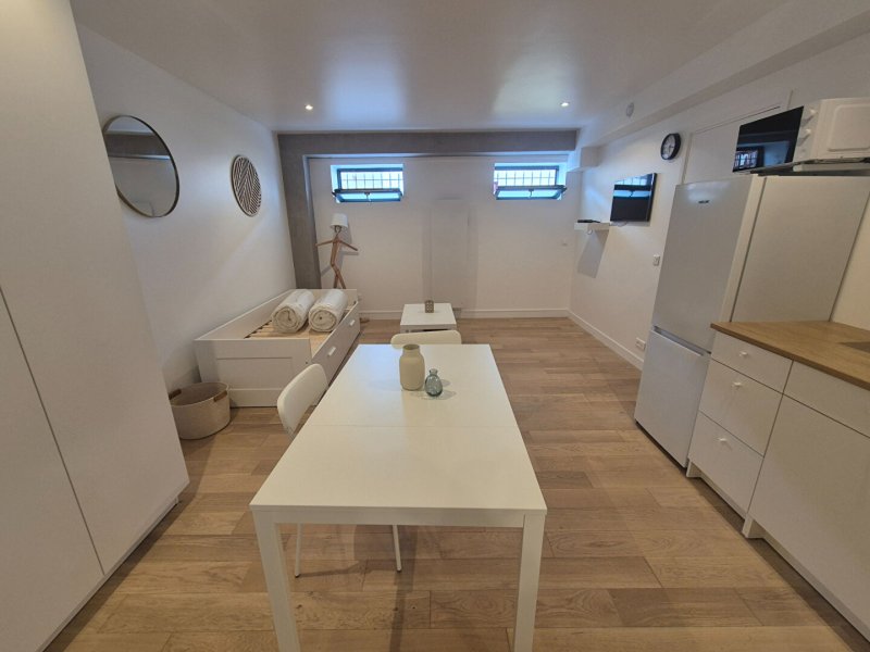 Ce bien entièrement rénové comprend : une entrée avec rangement, une pièce principale meublée avec goût, cuisine aménagée équipée, salle de douches XXL, WC séparé.
