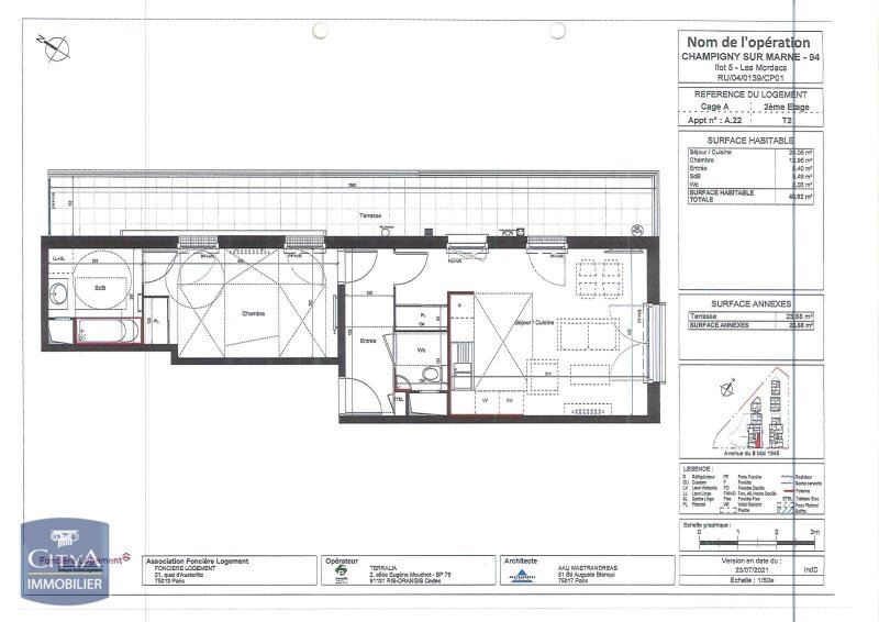 L'appartement se compose d'un salon spacieux de 24,05 m², idéal pour recevoir ou se détendre. Vous disposerez d'une chambre confortable avec placard, ainsi que d'une salle de bain bien agencée. De plus, un patio privatif vous permettra de profiter d'un espace extérieur agréable.