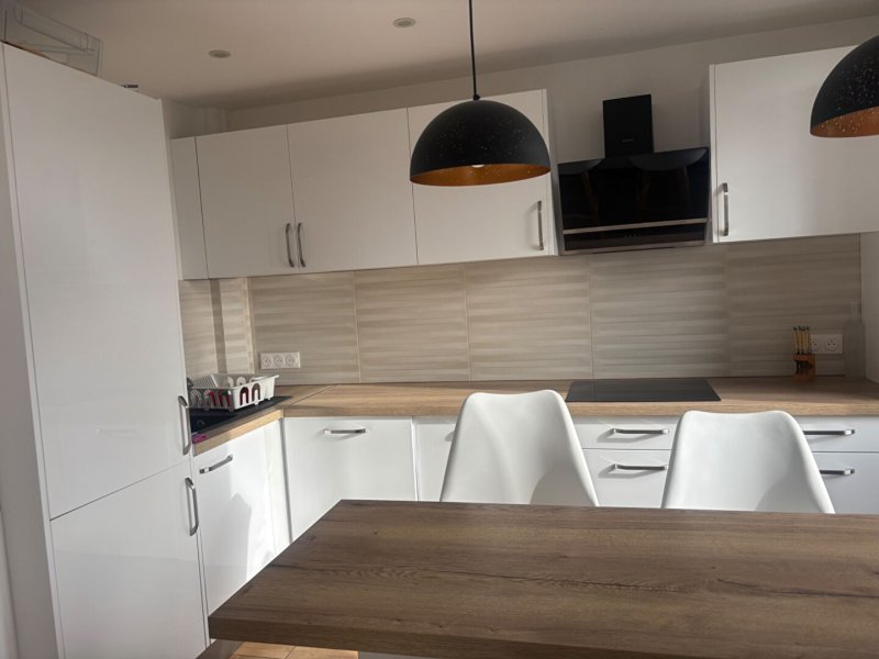 L'appartement se compose d'un séjour qui donne accès à un balcon, d'une cuisine aménagée et équipée, de 2 chambres , d'une salle de bain avec espace buanderie et d'un W.C indépendant.